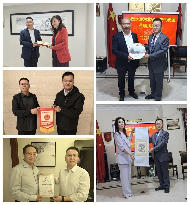 在埃及,代表团走访了埃中企业家协会、埃及中国和平统一促进会、埃及华侨华人协会、埃及中国商会、埃及中华总会、埃及河北同乡会等侨团,参观新峰钢铁产业基地、新兴铸管(埃及)股份有限公司,了解当地侨团发展情况和企业建设情况。在摩洛哥,代表团走访了摩洛哥王国华人华侨工商业联合会、摩洛哥和平统一促进会、摩洛哥河北商会、拉巴特中国文化交流中心、哈桑二世大学孔子学院,就弘扬中华传统文化、办好寻根之旅夏(冬)令营和网上营进行了深入交流。