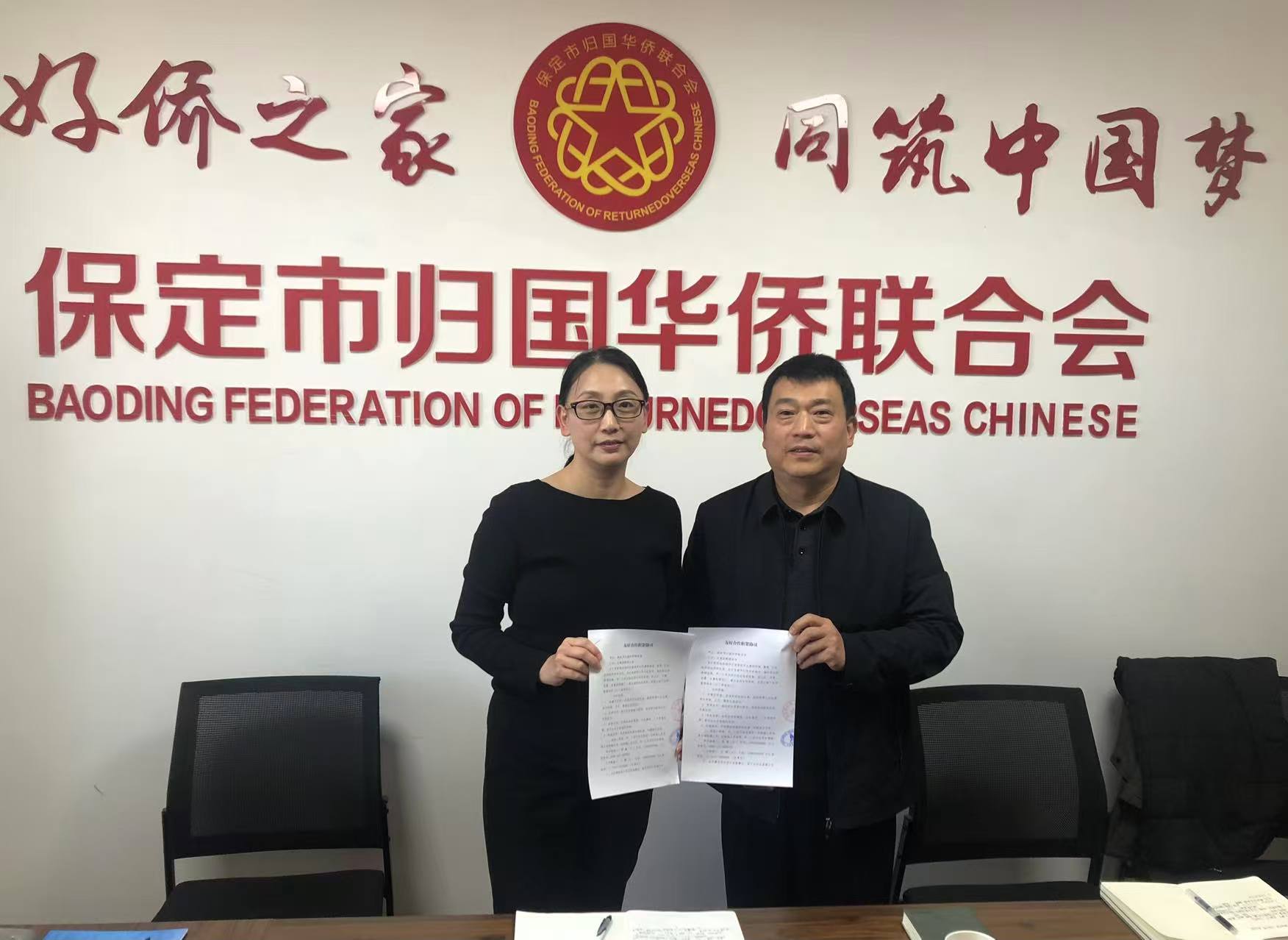 12月3日,北美创新联合会执行主席王娜一行在南非中原华商会会长王剑的陪同下来保考察交流,保定市侨联热情接待考察团一行并签订友好合作框架协议。河北大学国际交流与教育学院副院长王丽霞应邀出席活动。