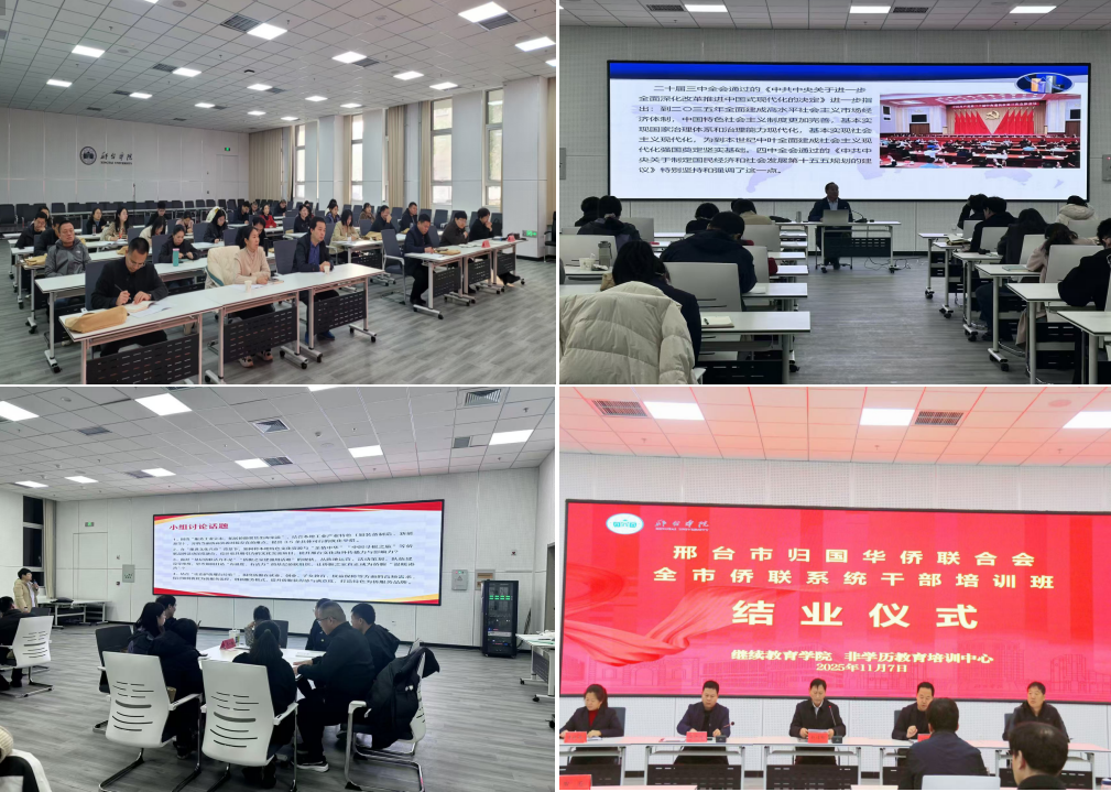 为深入学习贯彻习近平新时代中国特色社会主义思想和党的二十届四中全会精神,进一步深化四型市直机关创建,提升邢台市侨联系统干部队伍素质,推动邢台市侨联事业高质量发展,11月4日至7日,2025年全市侨联系统干部培训班在邢台学院圆满举行。市侨联党组书记许丽爽、邢台学院继续教育学院院长吕杰出席开班仪式并讲话,全市各县(市、区)的30余名侨联专兼职干部参加培训。