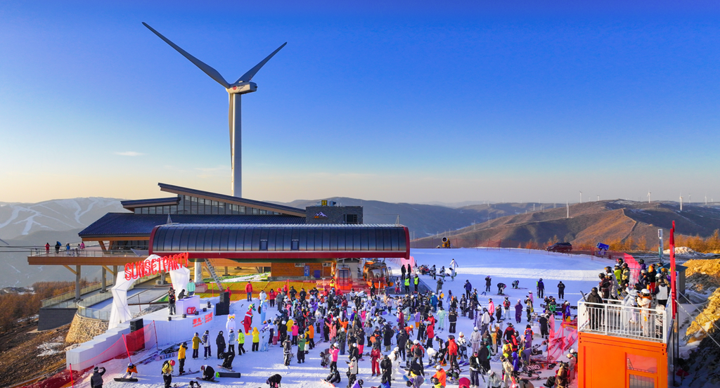 11月22日,在雪如意滑雪场,游客参加落日派对。鲍志超摄
