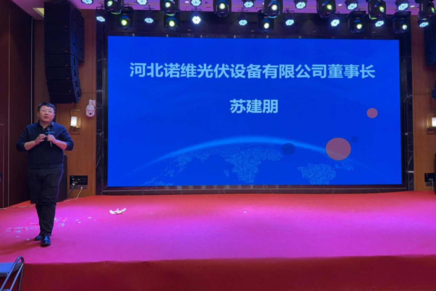 河北诺维光伏设备有限公司董事长苏建朋作分享发言。
