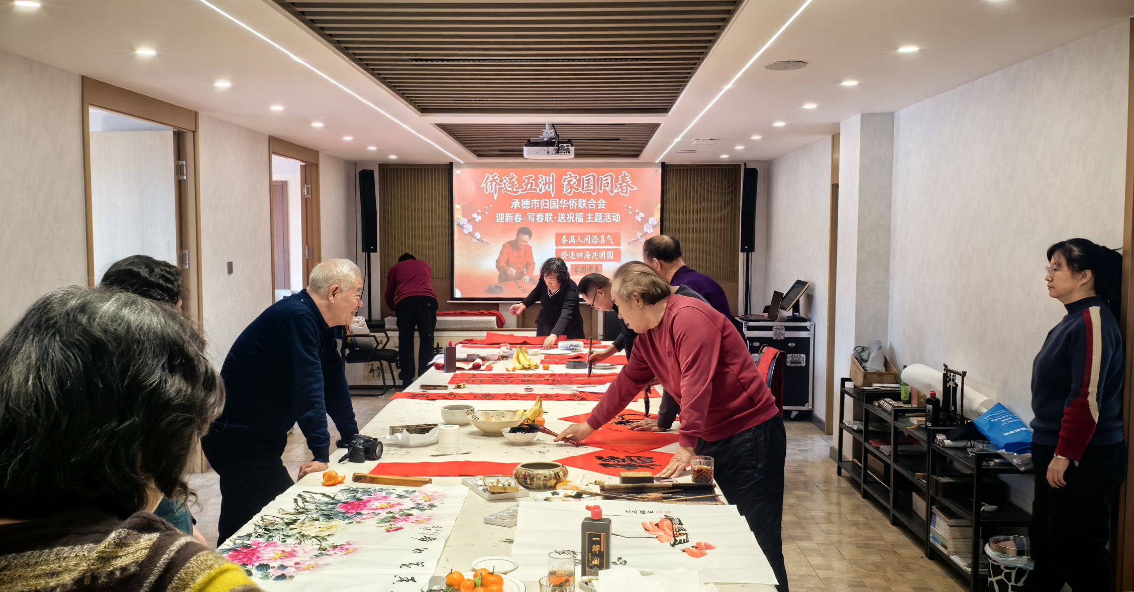 岁序更替,华章日新;翰墨飘香,侨情融融。在农历小年来临之际,承德市侨联委员刘海泉在茗酒会委员会客厅以“侨连五洲,家国同春”为主题,组织开展迎新春、写春联、送祝福活动,为全市归侨侨眷书写定制春联、赠送福字,把浓浓年味、暖暖侨情与新春祝福送到侨界群众心坎上。