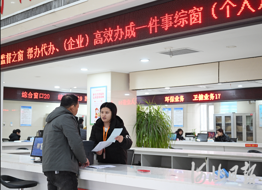 2月27日,平乡县政务服务大厅“高效办成一件事”专区工作人员在为群众办理相关业务。河北日报记者赵永辉摄