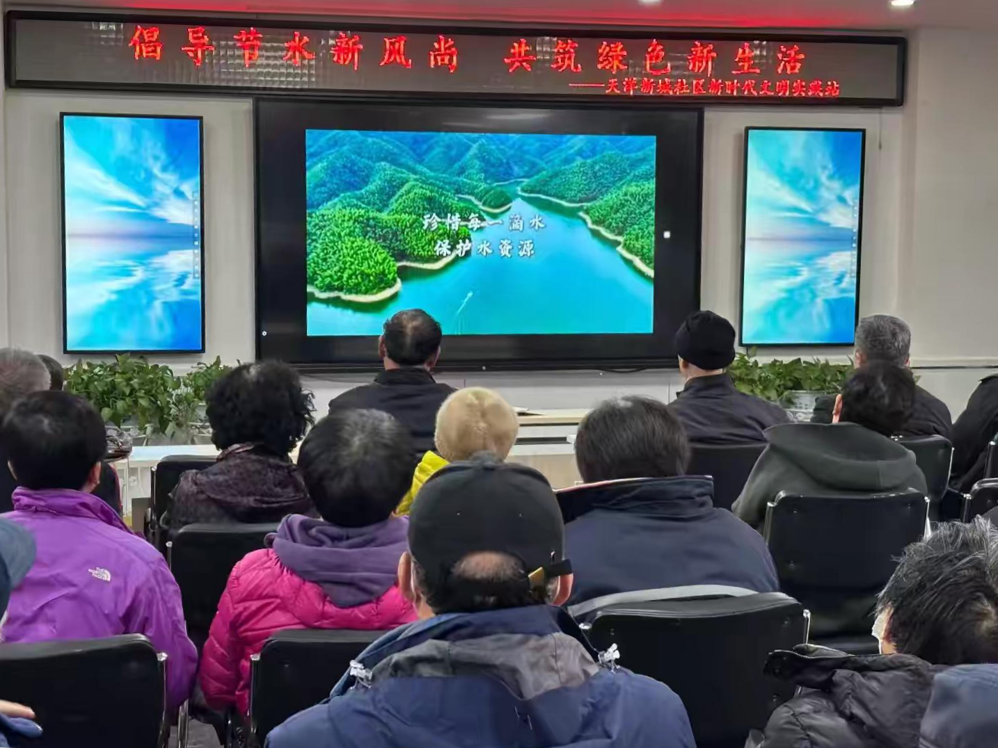 活动期间,社区工作人员组织居民集中观看节水护水科普视频,学习水资源保护知识与生活节水技巧,并向大家发出节水倡议,倡导一水多用、随手关紧水龙头等实用节水技巧,将节水理念转化为具体可行的生活习惯,引导大家在点滴中践行绿色生活方式。