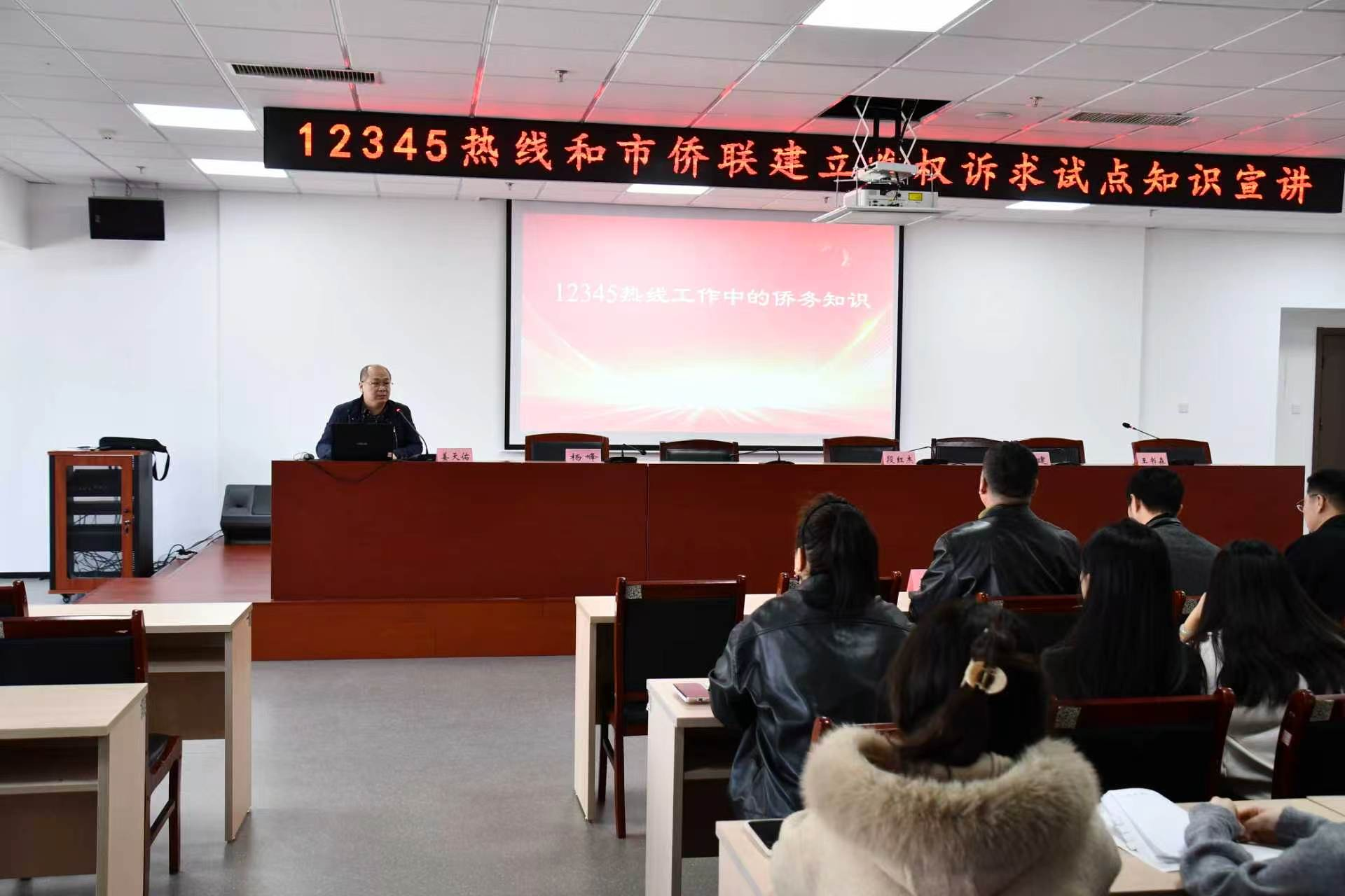 3月27日,秦皇岛市侨联、市数政局、市侨办联合在市政务服务中心6楼会议室开展涉侨知识讲座。市12345热线人员近40人参加本次讲座。